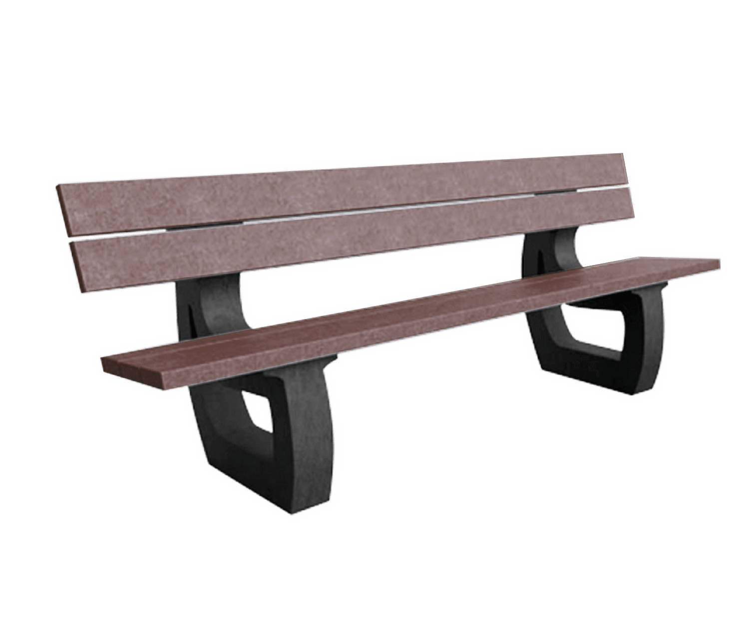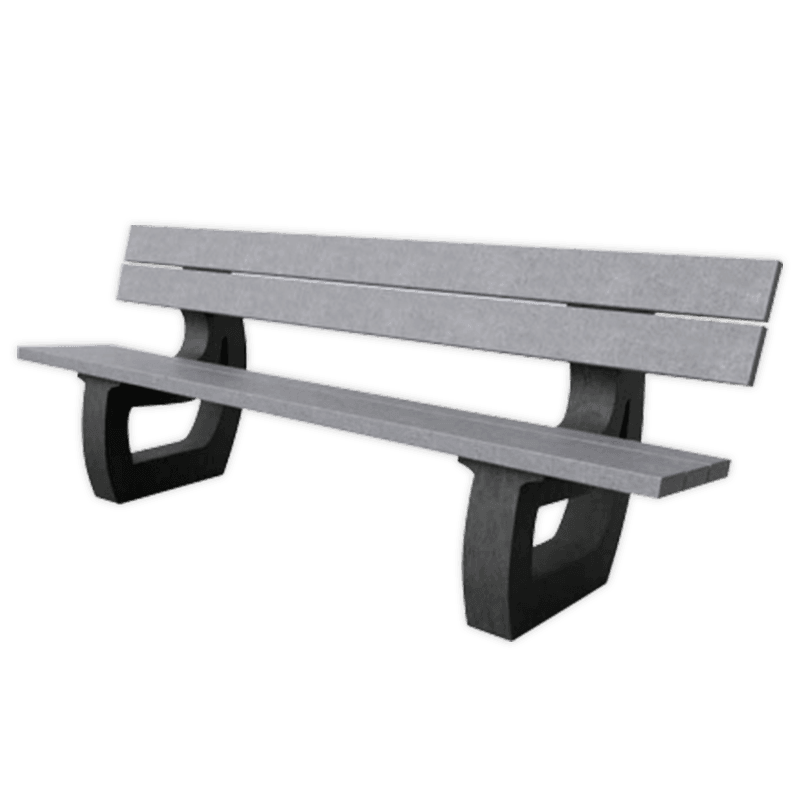 Deze herkenbare kunststof parkbank combineert een klassieke degelijke zitbank met minimalistisch design. De parkbank is gemaakt uit massief gerecycleerd kunststof en is in de kern gekleurd.